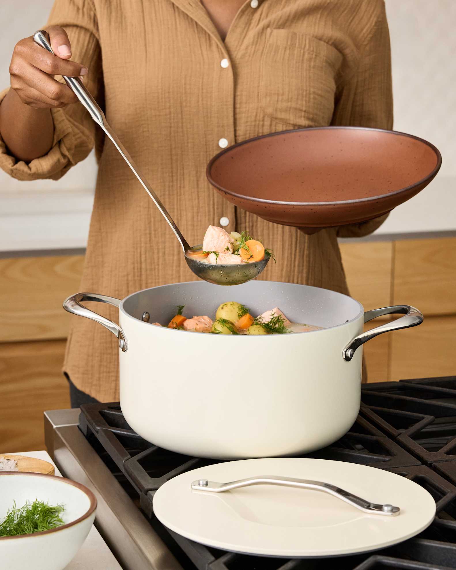 • Enamel on Steel/Carbon Steel: These pots heat up fast and are surprisingly lightweight, making them easier to handle, even when full. They are also resistant to stains, rust, and scratches.
