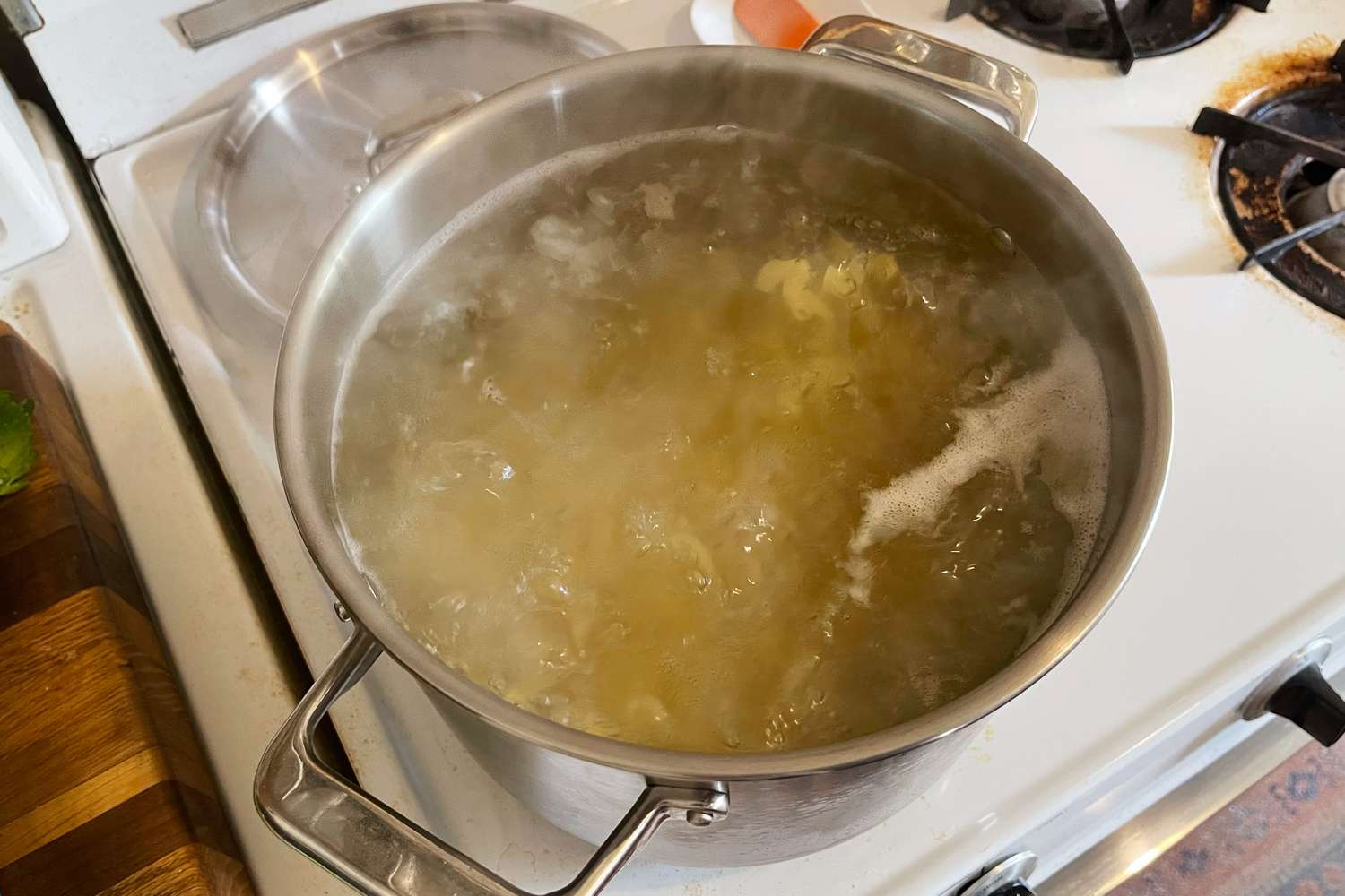 A pro tip for any copper pot: always add salt to your water or stock after it has come to a boil. Adding salt to cold water in a copper pot, especially if the lining is compromised, can lead to pitting or discoloration of the copper.